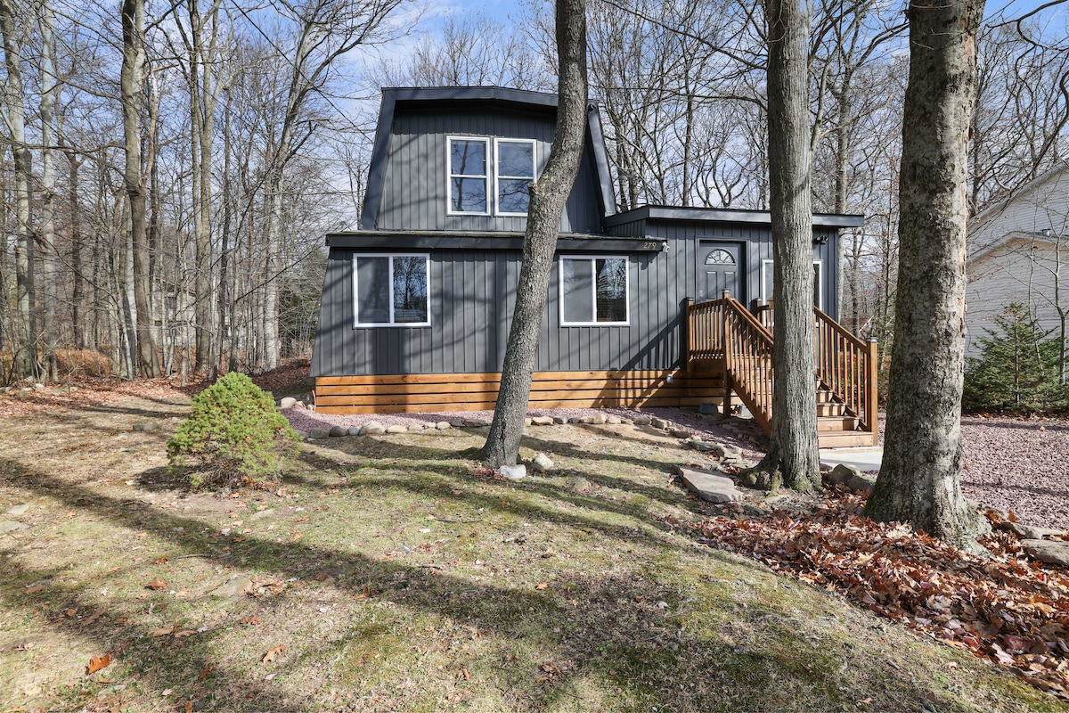 Velkomin í afskekkta afdrep okkar í Poconos, sem er þægilega staðsett nógu langt frá alfaraleið til að njóta nætur undir stjörnunum, en nógu nálægt mörgum áhugaverðum stöðum svæðisins. Þú munt elska að hafa nýuppgert og notalegt rými til að hringja í heimastöðina í Poconos. Þegar þú ert tilbúin/n getur þú farið á gönguleiðir eða rallað út í brekkurnar. Ef þú ert að leita að nútímalegu og notalegu rými til að komast í burtu fyrir rómantíska helgi eða ævintýri með vini, þá er þetta staðurinn fyrir þig!