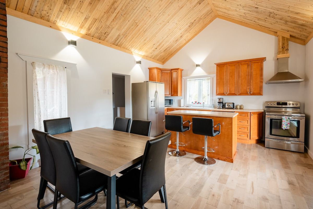 Nokkrum skrefum frá fræga veitingastaðnum Le Bootlegger, sem er nýuppgert, mun bjóða þér upp á kyrrð og rólegan rétt með fjölskyldu þinni eða vinum. Með hreim sínum af innri viðarveggjum finnur þú nútímaleika ásamt stórkostlegu útsýni yfir hið mikla Nairn-vatn sem og nærliggjandi þorp, Notre-Dame-des-Monts. Staðsett í innan við 15 mínútna fjarlægð frá miðborg La Malbaie og hefur greiðan aðgang að veitingastaðnum og afþreyingunni sem boðið er upp á. CITQ: 306556