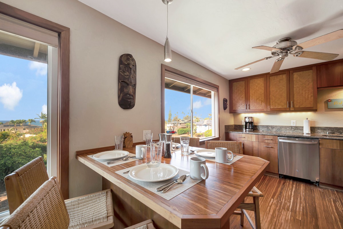 Kaua'i Prince Kuhio 104 er glæsileg íbúð á jarðhæð með einu svefnherbergi og sjávarútsýni. Eigendurnir þyrftu engar upplýsingar við endurbætur á þessu heimili! Glæsilegt eldhús, nýtt gólfefni og notaleg stofa! Frá einkaveröndinni þinni getur þú notið kyrrlátra hljóðanna frá aflíðandi sjávaröldum, hitabeltissöngfuglum og pálmablöðum sem ryðja sér til rúms í viðskiptavindunum. Með beinum aðgangi að sundlaug, ströndinni og bænum er auðvelt að fullnægja öllum óskum þínum um paradís. Þvottavél og þurrkari eru á staðnum.