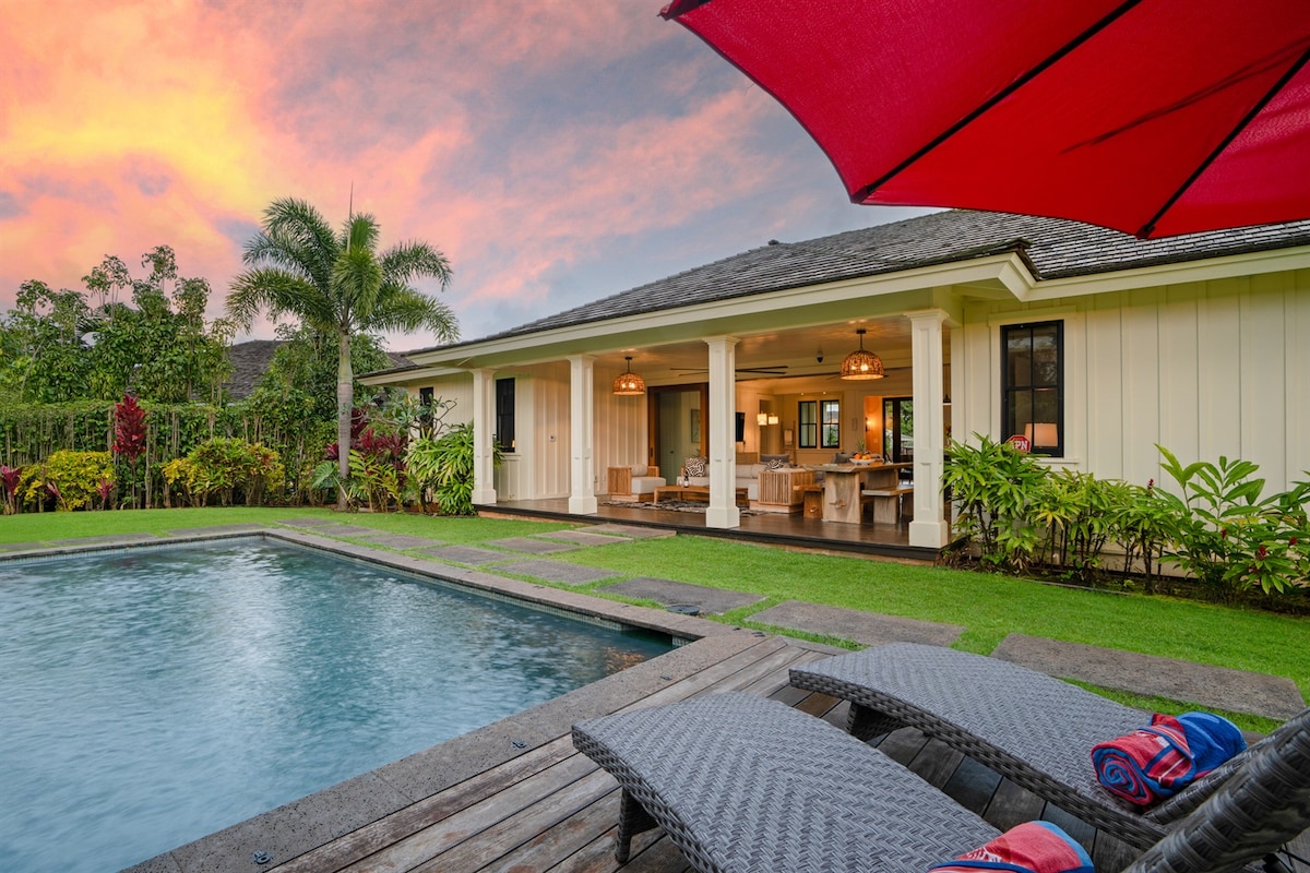 Á þessu nýja, sérsniðna heimili eru 3 stór svefnherbergi og 2,5 baðherbergi sem eru tilvalin fyrir stærri veislur til að gista saman í fríinu. Í húsinu er miðlæg loftræsting, háhraða þráðlaust net, minnissvamprúm og öll strandleikföng sem þú þarft til að njóta stranda Kauai. Húsið er í 5 mín. göngufjarlægð frá ströndum Poipu sem eru fullar af frábæru brimbretti, snorkli, köfun og fiskveiðum. Stutt er í verslunarmiðstöðina Kukui 'ula með frábærum veitingastöðum og verslunum á staðnum. Þú munt finna sanna afslöppun hjá okkur.
