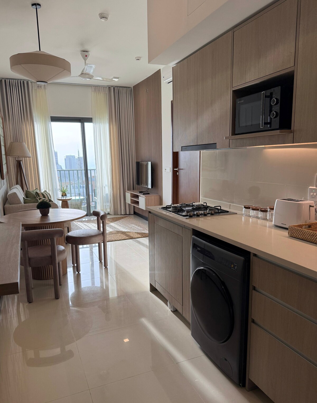 Fully air conditioned cozy luxury apartment (1000+sqf) with two bedrooms, living area, kitchen & balcony. Could enjoy having the whole apartment with lush of accessing swimming pool and the gym. The place is a hub to access public transport, 30 minutes to CMB airport an hour to Galle on the motorway and 40 minute drive to colombo city. Away from hassle of the city but still very convenient location having access to super-markets, restaurants within 5-10 minutes walk.Very popular for long stays.