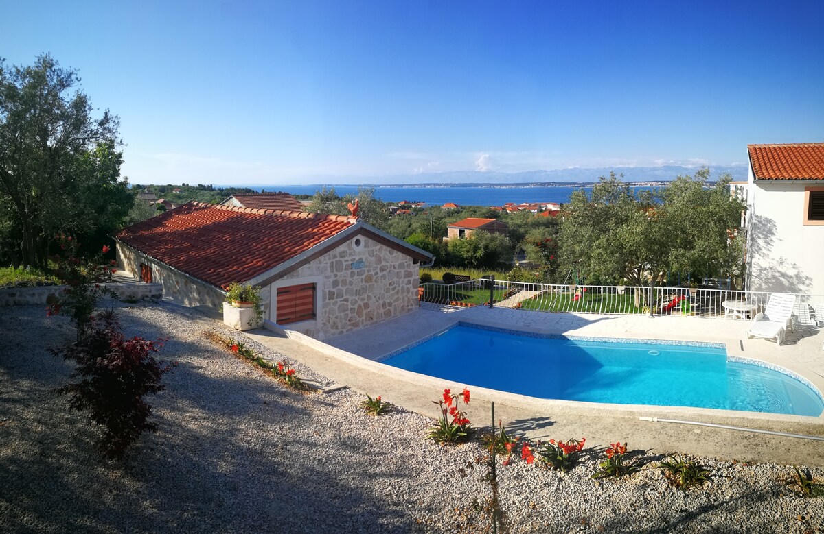 Mr. house er steinhús staðsett í Kali á eyjunni Ugljan. Er efst á hæðinni og býður upp á fullkomið útsýni yfir Kornati, Dugi Otok, Iž. Húsið er með sólarorku og veitir þér venjulega rafmagnsnotkun! Dagsbirtan er frábær inni og úti í húsinu. Þú munt njóta náttúrunnar í fallegu andrúmslofti. Húsið er fullkomið fyrir fólk sem vill upplifa ævintýri og náttúrufegurð! Við hlökkum til að taka á móti þér!!!Sjáumst! Húsið hans