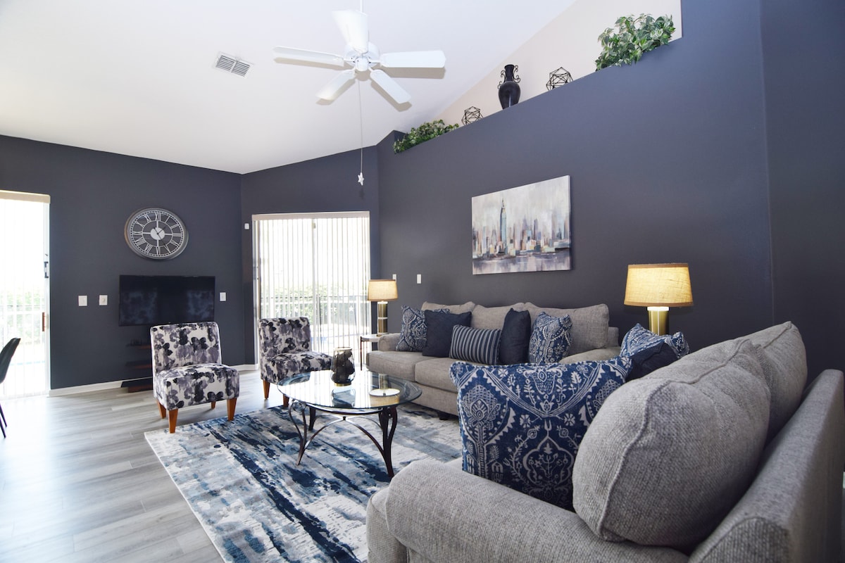 Platform fee 18.5% is paid by host. One of the closest resorts to Disney World (5 miles), 3-bedroom, 2.5-bath townhome overlooks a serene conservation area, There are heated outdoor pools and spas, sauna, gym, game room, mini golf, volleyball, tennis courts and kids' play areas. 1295 sqft of comfort and value—perfect for guests seeking relaxation and convenience, not hotel-style luxury or perfection **Primary guest registration with ID required through guest portal.