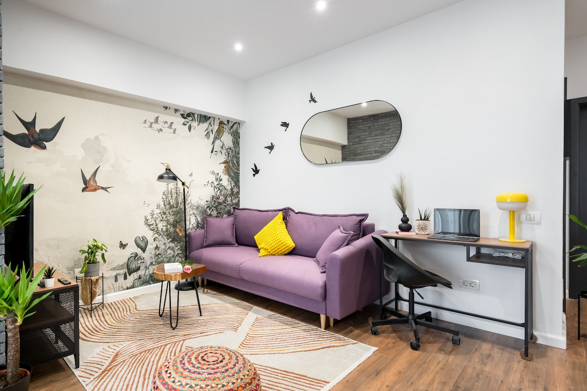 Vaknaðu endurnærð/ur í glæsilegri loftíbúð sem er hönnuð til þæginda fyrir þig. Hvort sem þú ert í Búkarest vegna viðskipta eða tómstunda býður Sunflower Loft upp á fullkomið jafnvægi glæsileika og afslöppunar. Sökktu þér í mjúkt queen-rúm, njóttu kvikmyndakvölds með Netflix eða sötraðu espresso á einkasvölunum. Hratt þráðlaust net heldur þér í sambandi en bestu staðirnir í borginni eru steinsnar í burtu. Eftir að hafa skoðað þig um í kyrrlátu og úrvalsafdrepi. Bókaðu núna fyrirhafnarlausa gistingu!