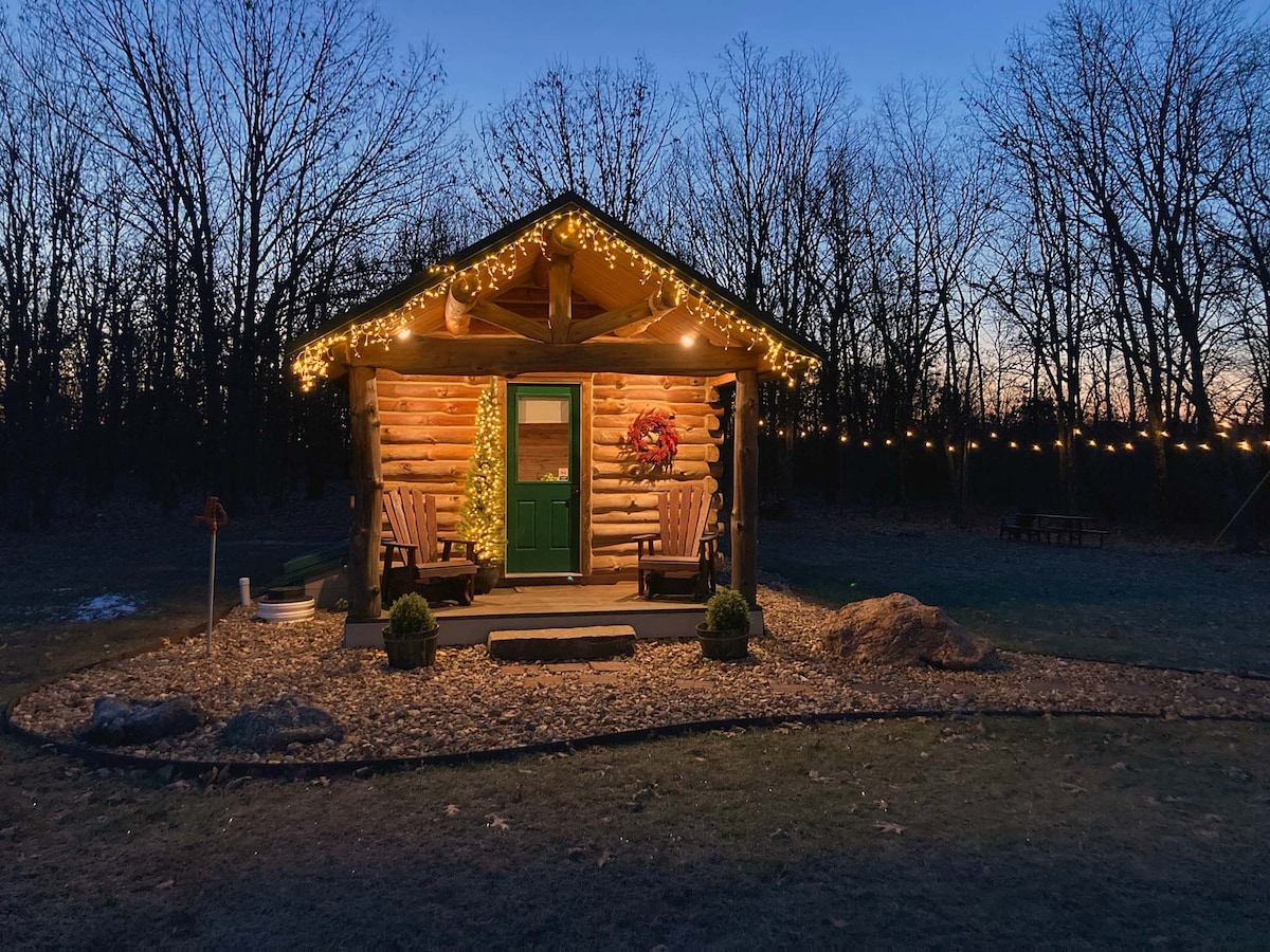Þessi notalegi bústaður í skóginum (fullkláraður í júní 2017) er fullkominn fyrir par sem er að leita sér að rómantísku fríi, fara í brúðkaupsferð eða halda upp á brúðkaupsafmæli. (Sófinn er fullbúið rúm sem hægt er að breyta ef aðrir hyggjast deila 400 fermetra rýminu.) Staðsett í Lake Hill (áður Shadow Lake) Golf Course hverfinu (völlurinn er lokaður eins og er) um 1,6 km frá NW ströndum hins fallega Pomme de Terre Lake og um 8 km suður af Lucas Oil Speedway.