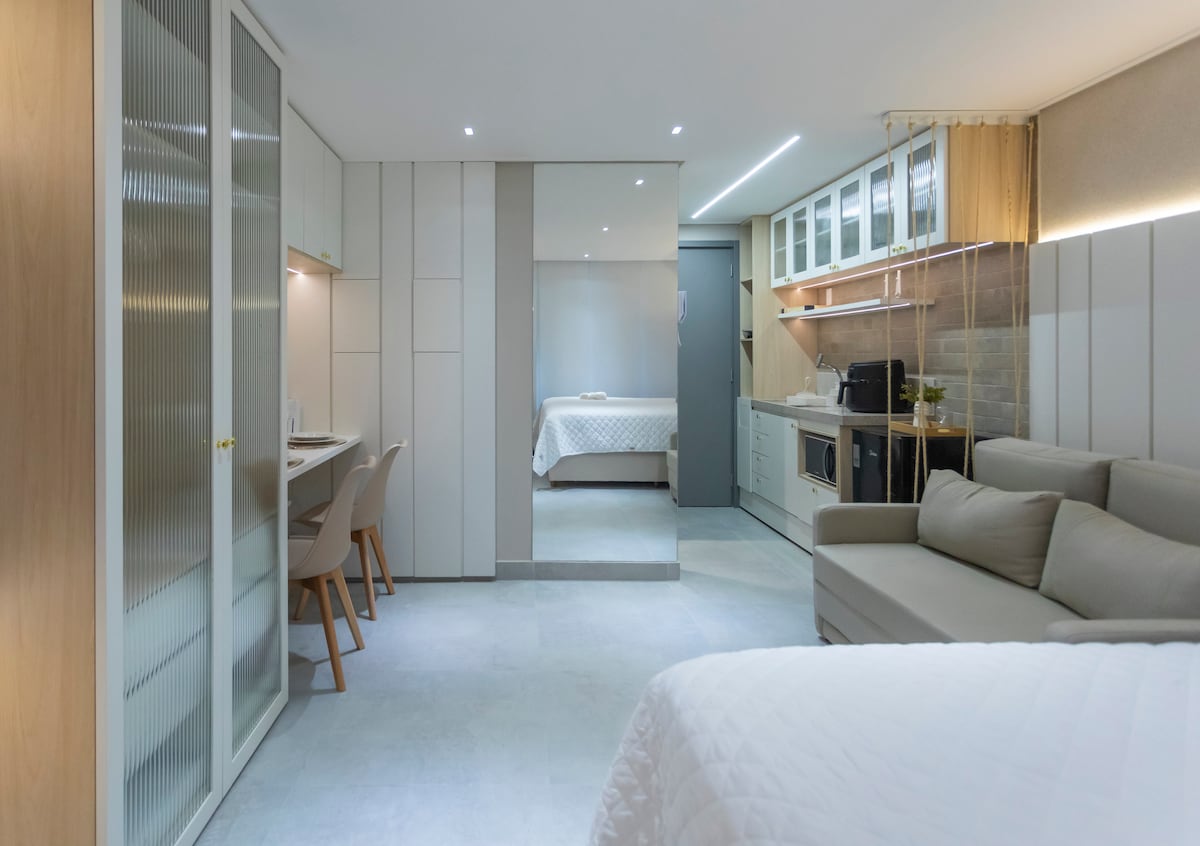 Smábátahöfn í hjarta ferðamannaumhverfis JAMPA við strönd Cabo Branco. Við erum með miðlæga loftræstingu, kapalsjónvarp, þráðlaust net, ísskáp, tvö snjallsjónvörp, örbylgjuofn, blandara, kaffivél, smurábrauðsgrill, straujárn o.s.frv. Við erum með snúningsbílastæði, sundlaug, ræktarstöð, þvottahús og sólarhringsmóttöku ásamt rúm- og baðlín. MIKILVÆGT, við erum ekki með kolsýringsskynjara þar sem allur búnaður okkar er rafmagnstengdur. Og það er ekkert ástand sem réttlætir notkun þess.