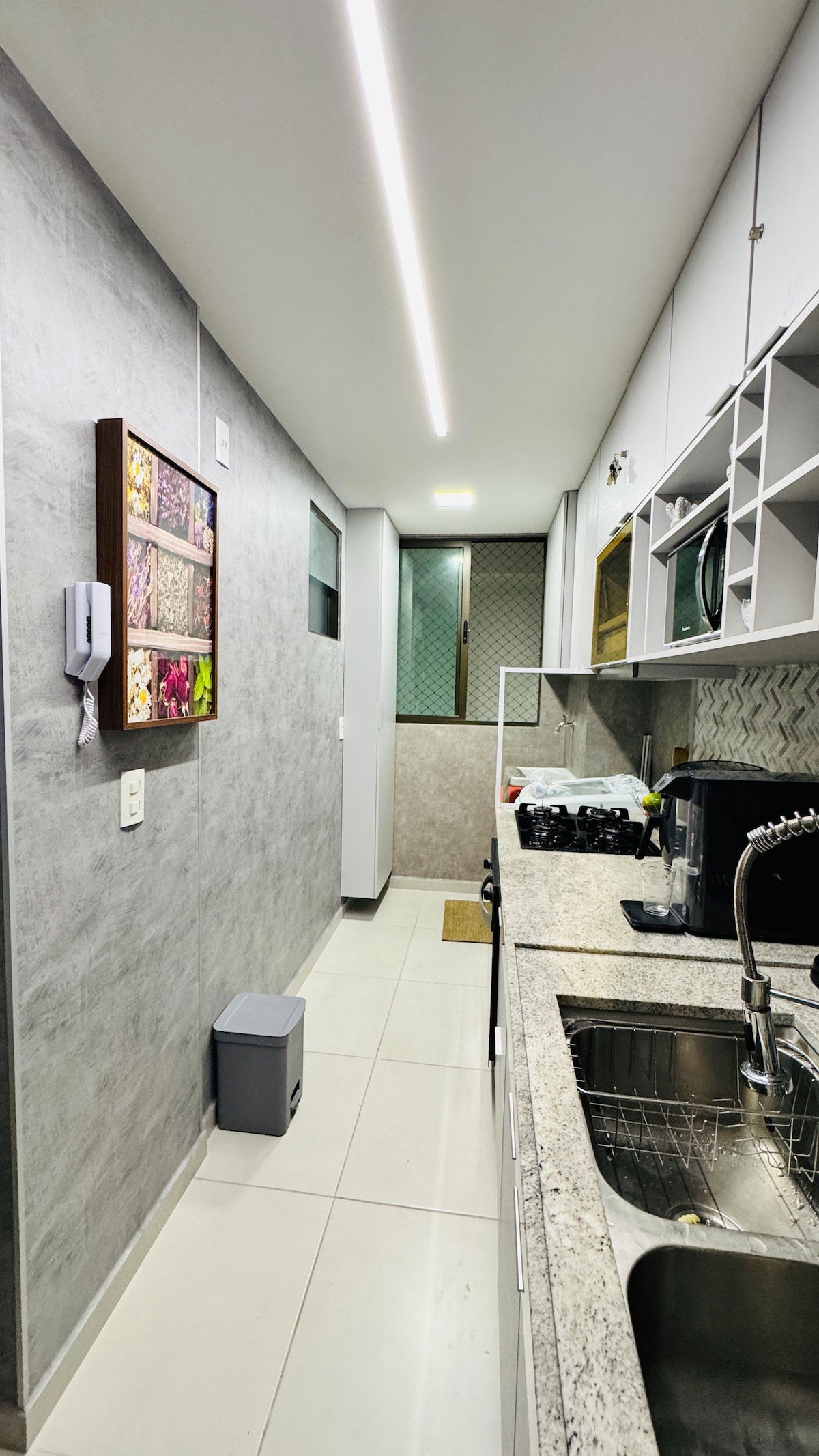 1023 er stúdíó til að bjóða upp á fullkomna dvöl fyrir þá sem vilja þægindi, þægindi, stíl og öryggi í besta hverfinu í Maceió. Það hefur verið útbúið með vel skipulögðum húsgögnum og er fallega skreytt með staðbundnum myndum eftir listamanninn okkar Thiago Laion. Edificio Time um er sannkallað listaverk með notalegu og lúxusumhverfi til ráðstöfunar fyrir gesti sína og íbúa.