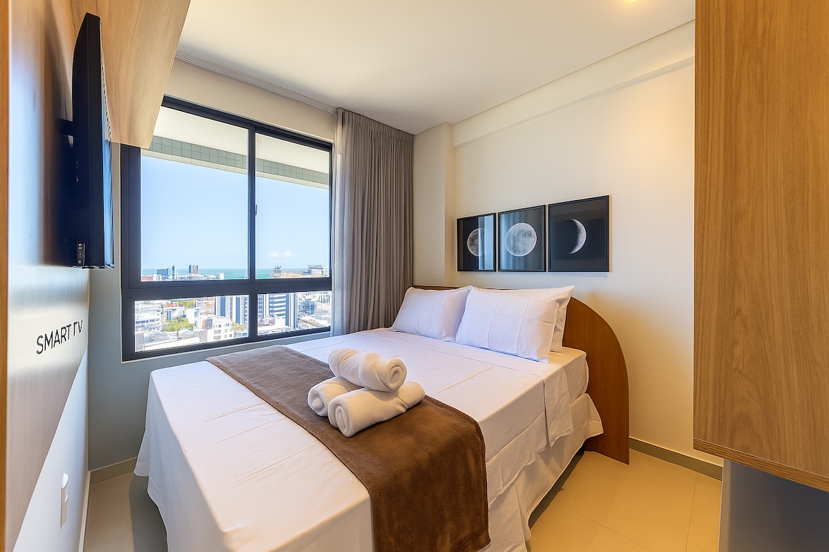 Íbúð með forréttinda staðsetningu einni húsaröð frá Pajuçara-strönd, nálægt hefðbundnu handverkssýningunum. Hverfið er með bari, veitingastaði, þægindaverslun, matvöruverslun, hraðbanka, apótek , hárgreiðslustofurog tískuverslanir. Allar innréttingar með loftkælingu í svefnherberginu og viftu í stofunni , snjallsjónvarpi, þráðlausu neti ,sundlaug og líkamsræktarstöð. Sem öryggisráðstöfun er byggingin með ytri myndavélar í einkaþjónustu, anddyri, göngum og lyftu.