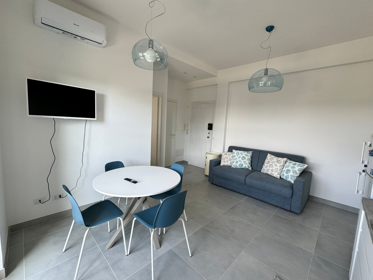 Þessi eins svefnherbergis íbúð er staðsett á 2. hæð í séríbúð með svölum með útsýni yfir sjóinn og ókeypis fráteknum bílastæðum. Ströndin er í 650 metra fjarlægð og einnig er hægt að komast þangað fótgangandi á einkavegi. Í íbúðinni er hjónaherbergi með stórum fataskáp. Í stofunni geta tveir í viðbót sofið í þægilega svefnsófanum Chateaux d 'Ax. Þráðlaust net, loftkæling í báðum herbergjum, þvottavél, uppþvottavél, snjallsjónvarp, Nespresso-vél o.s.frv.