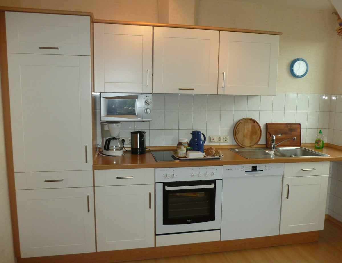 Íbúð í sveitastíl með mjög góðri flísalagðri eldavél bíður þín á veturna. Rétt fyrir utan dyrnar er að finna sauðfé og nautgripa sem bjóða þér að fara í gönguferðir eða hjólaferðir. Westerhever-vitinn er í aðeins 5-6 km fjarlægð. Ekki langt frá Poppenbüll finnur þú sundstaðinn Evershop Siel. Ferðir til Sankt Peter Ording, Büsum, Husum eða Friedrichstadt veita góða breytingu á rólegu sveitalífi í Poppenbüll.