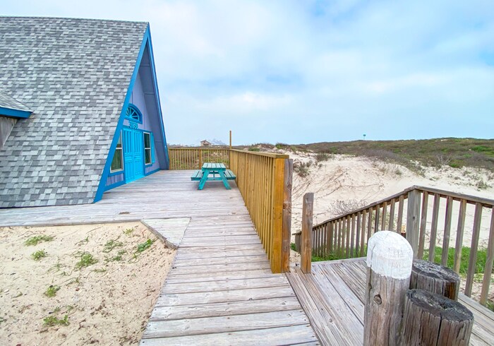 The Sunshine House is your family vacation home. It’s a TRUE beach house that is accessed directly from the beach, sitting among the sand dunes with a priceless view of the sunrise over the ocean and the sunset in late afternoon. Comfortable, clean, and currently updated! You won’t be disappointed! Please SEE: Other Things to Note For Area Details, Please SEE: The Neighborhood & Getting Around *Golf Cart (LSV) accessible