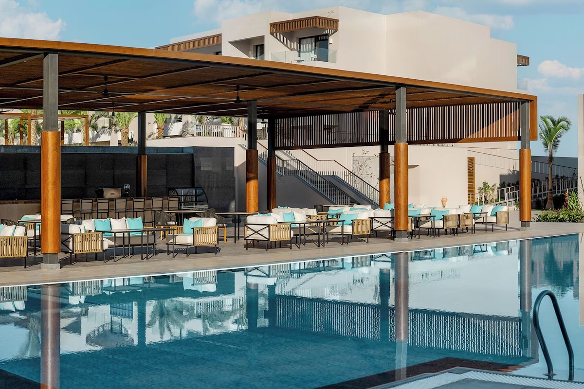 Luxurious beachfront escape with private access to velvety sands and the turquoise waters of Coraya Bay. Explore vibrant coral reefs and some of the Red Sea’s best dive sites. Unwind in a full-service spa, splash into pools and a water park, enjoy diverse dining, and stay active with sports, while kids love the club and daily entertainment.