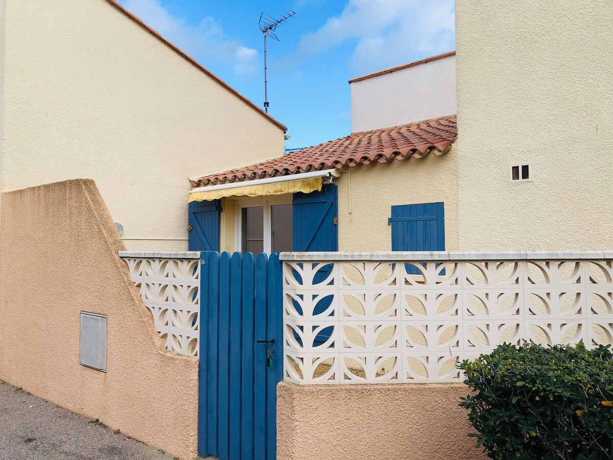 Animaux non admis et strictement non fumeur Dans une résidence de bords de plage (300m) jolie villa de plain pied équipée pour 4 personnes( 1 avec terrasse de 15m2 sans vis à vis au pied de la Grande Bleue…. 1 chambre couchage double et 1 canapé lit type gigogne Cuisine entièrement équipée Lave linge Exposition Ouest .au cœur de Barcarès entourée de restaurants / paillottes et cinémas ( clap ciné) Aqualand, casino et des activités nautiques à 5mn du port et du village, 3mn de Port Leucate