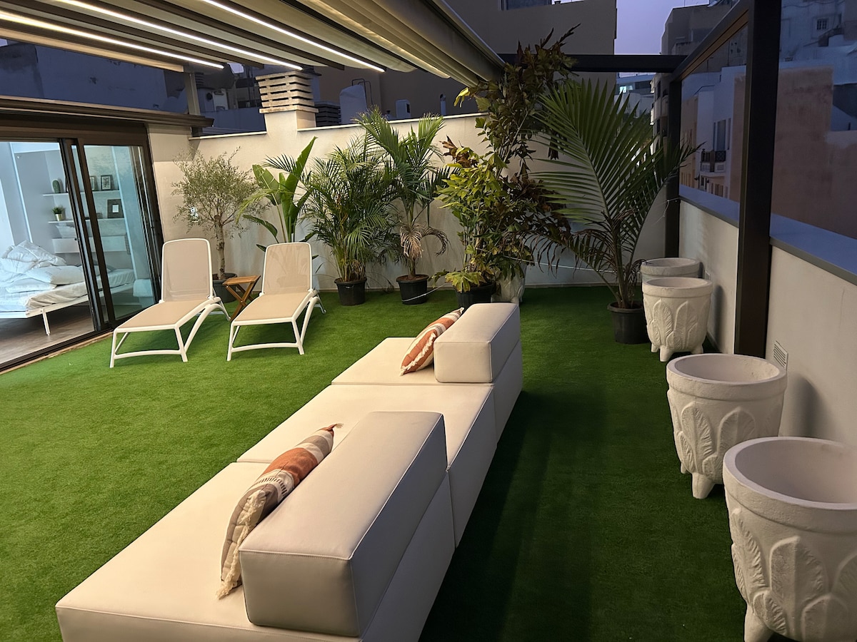 Töfrandi inni og út, þakíbúð með verönd og smálaug