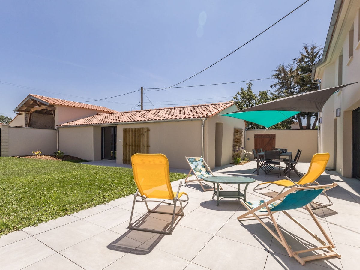 Logement classé de Tourisme Nous vous proposons une maison pleine de charme fraîchement rénovée en 2019 pour vos vacances et weekends. Elle est faite pour un séjour en famille ou entre amis. Votre animal de compagnie est aussi le bienvenu car le terrain est entièrement clos. Elle est idéalement située face à la forêt, à 300 mètres de la plage et 150 mètres des commerces. Notre Dame de Monts est à 15 km de l'île de Noirmoutier, 15 km embarcadère pour l’île d'Yeu, 30 de St Gilles Croix de Vie