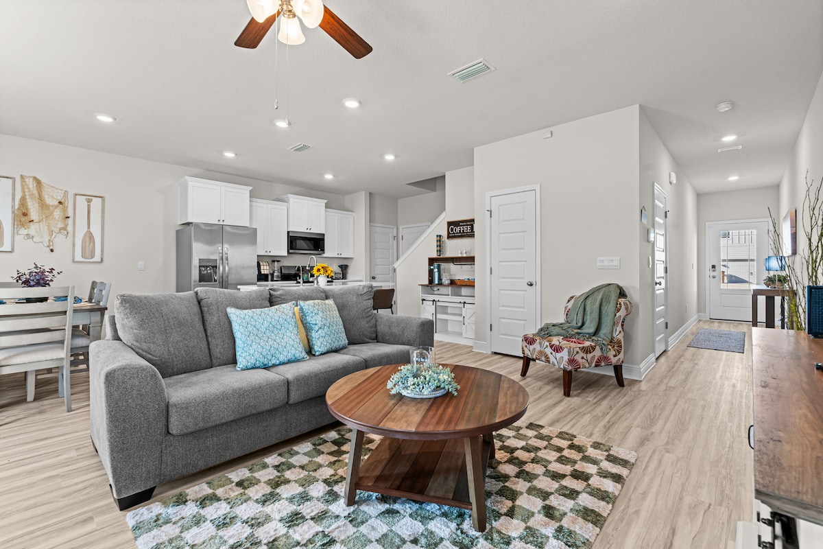 New 2023 luxury beach retreat in Windmark—boardwalk 2 houses away + resort pool walkable. Includes a 2025 6-seater golf cart + Tesla Level 2 EV charger + bikes/beach gear. Perfect for a large family: 4BR/3BA with a private in-law/teen suite + TWO full kitchens. Walk or ride our bikes 700 feet to the beach. Located in North Windmark closest to Mexico beach. Beautiful peek a boo views of the ocean from your back porch. Walk to the boardwalk.