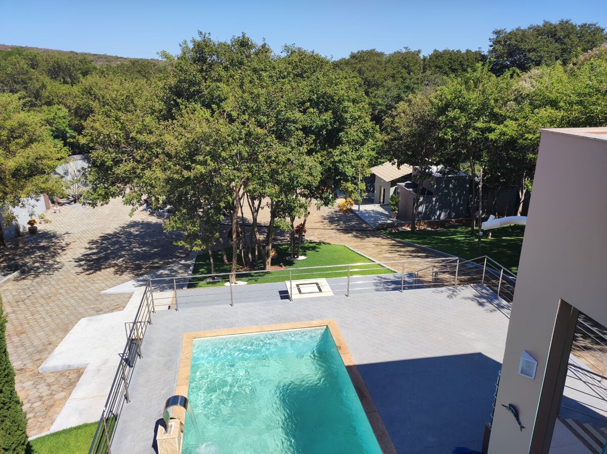 Komdu og upplifðu súrrealíska upplifun í fullkomnu og vel skipulögðu húsi með aðgengi að ánni og 3 km frá Serrado fossinum. Einstakur staður og fjölskyldustemning. Barnasvæði, tjaldsvæði, sandvöllur, upphituð sundlaug, 2 grillsvæði, 4 skálar (2 en-suites) og 4 svefnherbergi í aðalhúsinu. Allar heimavistir með klofinni loftkælingu. Samtals 7 baðherbergi. Lifðu og njóttu bestu upplifunar Serrado, Zona Rural de Porteirinha. Leigðu út alla eignina eða hafðu samband við breytingar.
