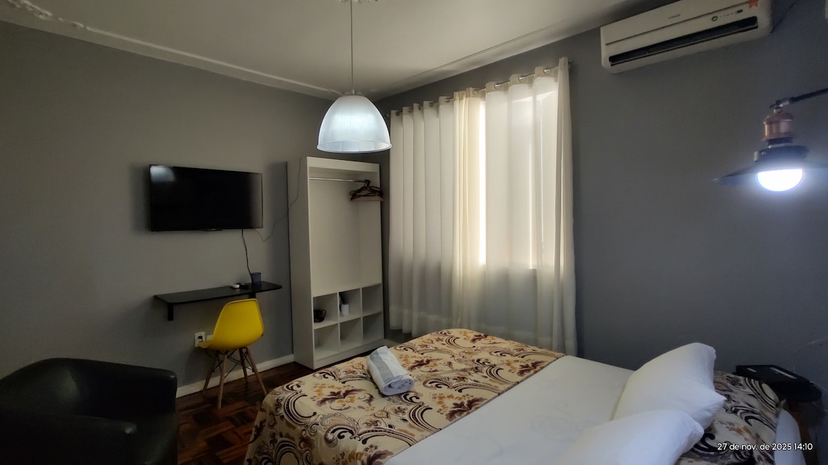 Þú hefur fundið íbúð sem er full af persónuleika! Staðsett í Historic Center, það er nálægt Santa Casa, UFRGS, Assem. Piratini og barir/veitingastaðir ásamt Zaffari matvörubúð hinum megin við götuna. Lokuð og örugg bygging með sólarhringsþjónustu og lyftum. Fullbúin með öllu sem þú þarft fyrir dvöl þína! Fullbúið eldhús, trefjar internet, snjallsjónvarp, loftkæling, straujárn, þurrkari og fleira! Hittu okkur! Það eru engin bílastæði í byggingunni.