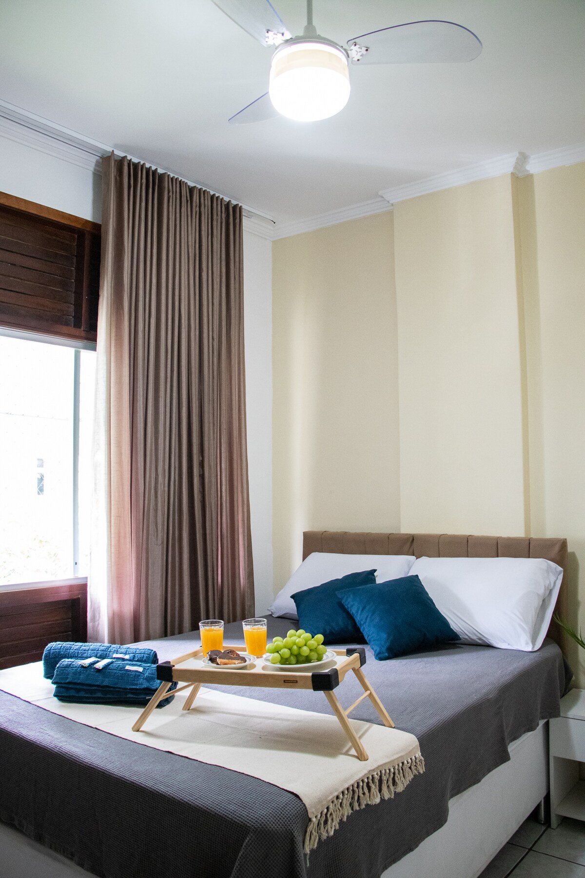 Hreint, hagnýtt og hagnýtt. Með öryggi og þægindum verður þú steinsnar frá Porto da Barra ströndinni (sem er kosin þriðja besta strönd í heimi af dagblaðinu The Guardian, „þessi strönd skarar fram úr vegna þess hve rólegt og ótrúlega hreint og tært vatnið er fullkomið til sunds“ 2007. Þar er pláss fyrir allt að 5 manns. Wi-Fi 500mb, Alexa sýndaraðstoð, moskítóskjáir og loftkæling á heimavistinni. Með bílastæði. Einkaþjónusta allan sólarhringinn. Lágmark 24 klukkustundir eru milli breytinga á gestum.