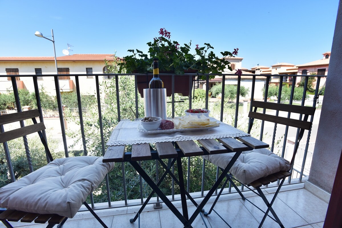 L'appartamento offre una grande veranda con una vista splendida sul mare scintillante della Sardegna, inquadrata da palme e dell'isola di San Macario con l'antica Torre spagnola, in lontananza il porto turistico di Perd'è Sali. Prima di farsi baciare dal sole ci si può tuffare nell'acqua cristallina sotto casa. La spiaggia mista di sassolini/sabbia si trova a circa 50 metri. E' inoltre la base ideale per esplorare tutto il Sud Sardegna e le sue magnifiche spiagge e paesaggi.