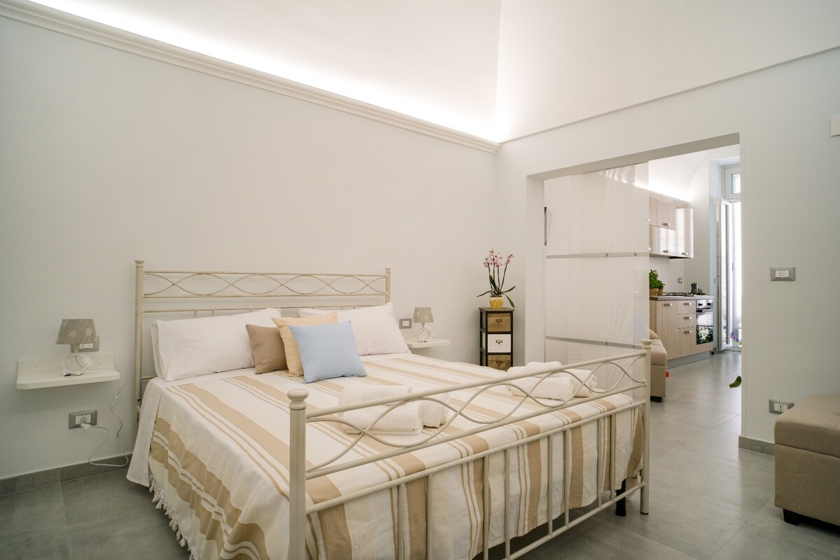 Stílhrein nýuppgerð íbúð okkar á annarri hæð í aldagamalli byggingu í miðborginni býður gestum upp á fjölbreytta nútímalega aðstöðu ásamt sjarma sögulegrar ítalskrar byggingarlistar. Íbúðin er með svalir með sjávarútsýni til hliðar, loftkælingu í hverju herbergi, vinnuaðstöðu, eldhús (með örbylgjuofni og nespresso-kaffivél) og baðherbergi með sturtu og skolskál. Þvottaþjónusta og síðbúin innritun standa gestum okkar til boða að kostnaðarlausu.