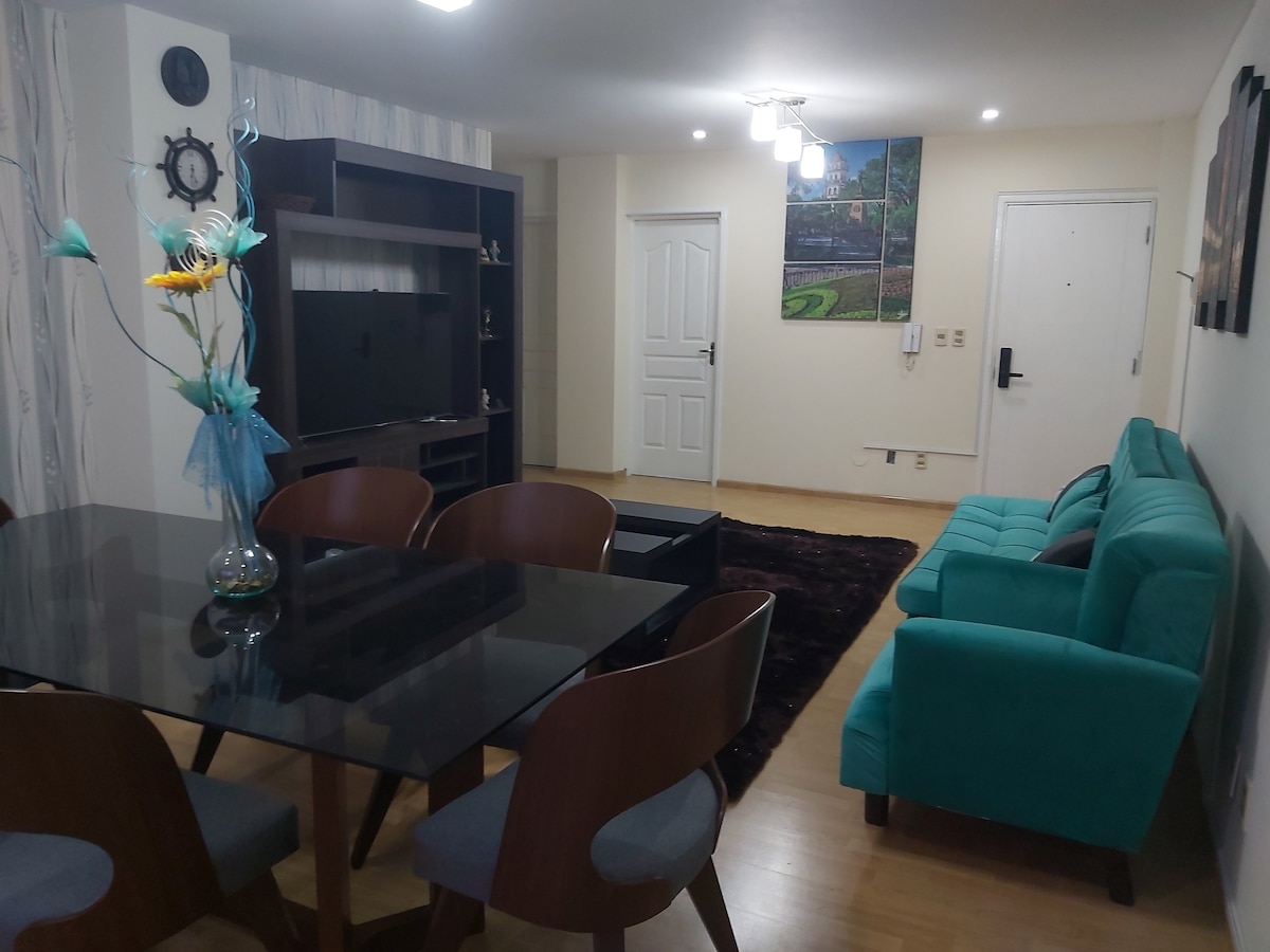 Departamento Ubicado en el lugar perfecto para dirigirse a los puntos mas importantes de la ciudad. Departamento muy acogedor con buena vista, zona segura y tranquila con una plazuela en frente, micro mercados cerca, gimnasio a unos pasos, restaurantes, entre otros. Para mayor seguridad contamos con cámara de seguridad en la entrada.