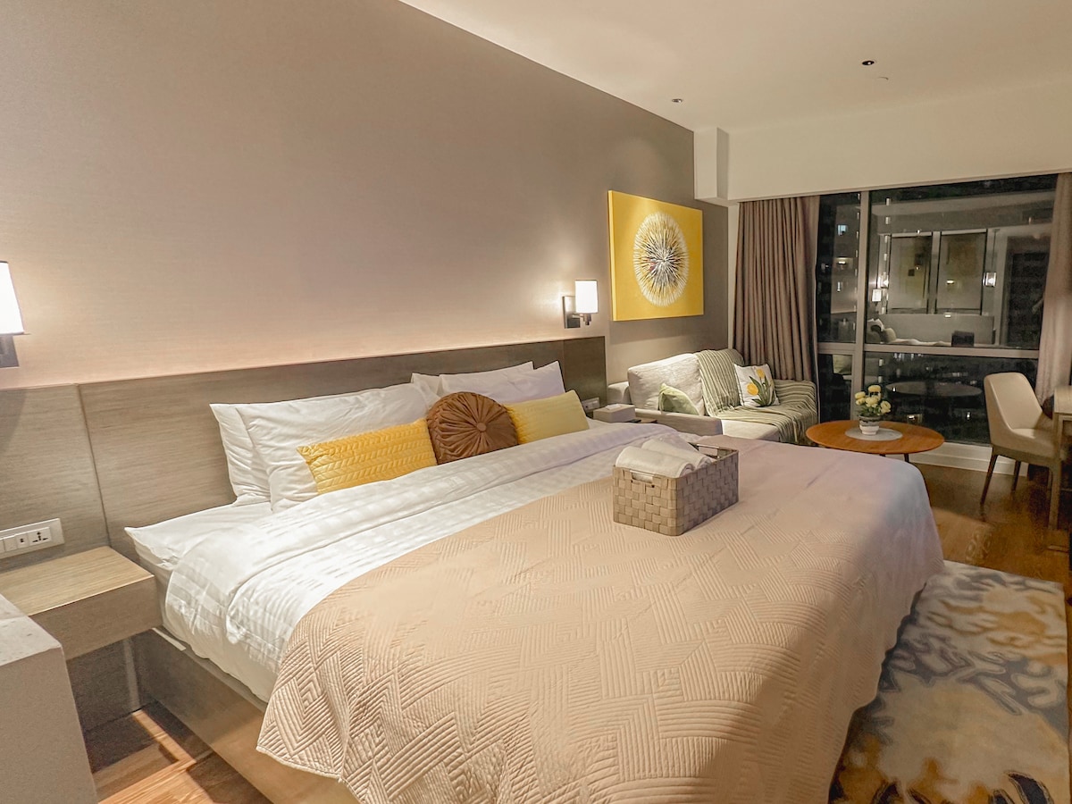 Uppgötvaðu fullkomna blöndu af lúxus og þægindum í glæsilegu svítunni okkar í Novotel Suites Tower í Acqua Private Residences, Mandaluyong. Njóttu rúms af stærðinni Kaliforníukóngur og heillandi útsýni yfir Rockwell. Frá Powerplant Mall og í nokkurra mínútna fjarlægð frá líflegum veitingastöðum, verslunum og næturlífi Makati er friðsæla borgarafdrepið okkar tilvalinn staður fyrir bæði viðskipti og tómstundir.