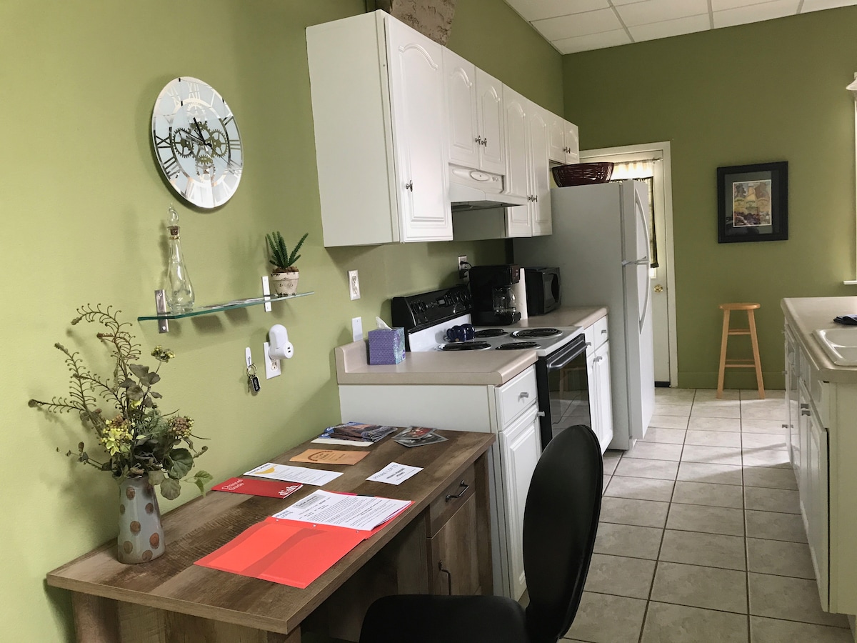 Komdu og upplifðu smábæ þar sem þú býrð í miðborg Grinnell. Árið 2017 lauk ég við sögulega endurnýjun á þessari 100 ára gömlu gersemi sem var laus í nokkur ár. Þú munt taka eftir háu loftinu og glansandi harðviðargólfinu þegar þú stígur inn í þakíbúðina mína. Þú ert í göngufæri frá Grinnell College, matvöruverslunum og mörgum veitingastöðum við hliðina á Strand-kvikmyndahúsinu.