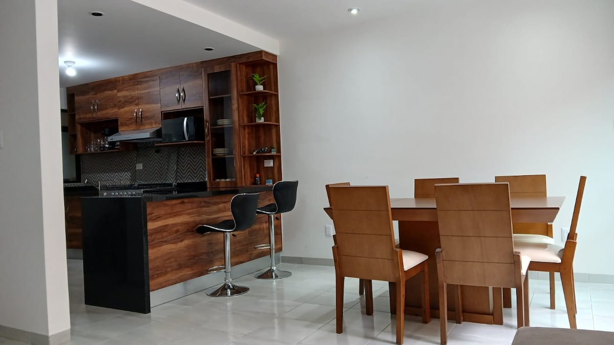 Frábær staðsetning í brunnum, þetta gistirými með aðgengilegum inngangi, þjónusta nálægt Walmart San Remo, Farmacias Guadalajara eða álíka , tiendita inni í íbúðunum Deildin samanstendur af 2 svefnherbergjum , 1 baðherbergi, svefnsófa , borðstofu, eldhúsi og þvottahúsi, herbergjum með sjónvarpi og einkaþvottaaðstöðu. 1 bílastæðaskúffa. Uppgert svæði með nútímalegum húsgögnum og þægilegum og hreinum rúmum til að hvílast vel. Það er með 2 turnviftur.
