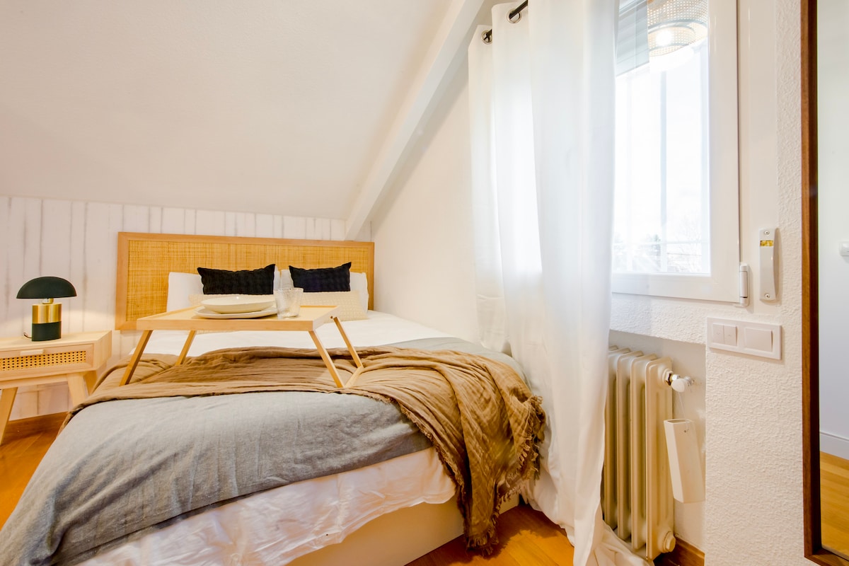 Cozy apartment attached to a villa in a private residential area, with a separate entrance. It features 2 bedrooms, 1 bathroom, a sofa bed, and an open-plan kitchen. Ideal for families, students, teachers, or professionals. Located on Av. Europa (Pozuelo), just 5 km from Moncloa: 2 minutes from the light rail, 5 minutes from Aravaca station, and free street parking available Close to ESIC, ICEMD, UCM, and Francisco de Vitoria University. A quiet area, perfect for academic or work-related stays