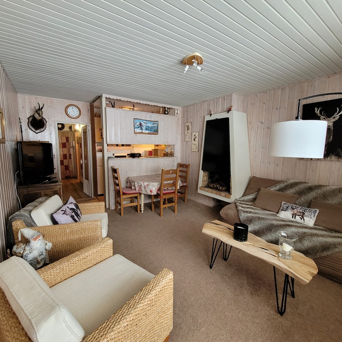 Íbúð á 4. hæð með bjartri, hljóðlátri lyftu sem snýr í suður 3 herbergi - 6 manns. 68m2. Staðsett í brekkunum. Stór verönd STOFA: 1 hjónarúm. Háskerpusjónvarp, ... ELDHÚS: uppþvottavél, örbylgjuofn,ísskápur/frystir, kaffivél, brauðrist, raclette-vél... SVEFNHERBERGI 1: Svefnherbergi með 1 hjónarúmi í 140 SVEFNHERBERGI 2: 90x190 kojur, 1 rúm í 120 *Baðherbergi,baðker, þvottavél *Salerni * EINKABÍLASTÆÐI UTANDYRA 1 skíðabox DÝR EKKI LEYFÐ