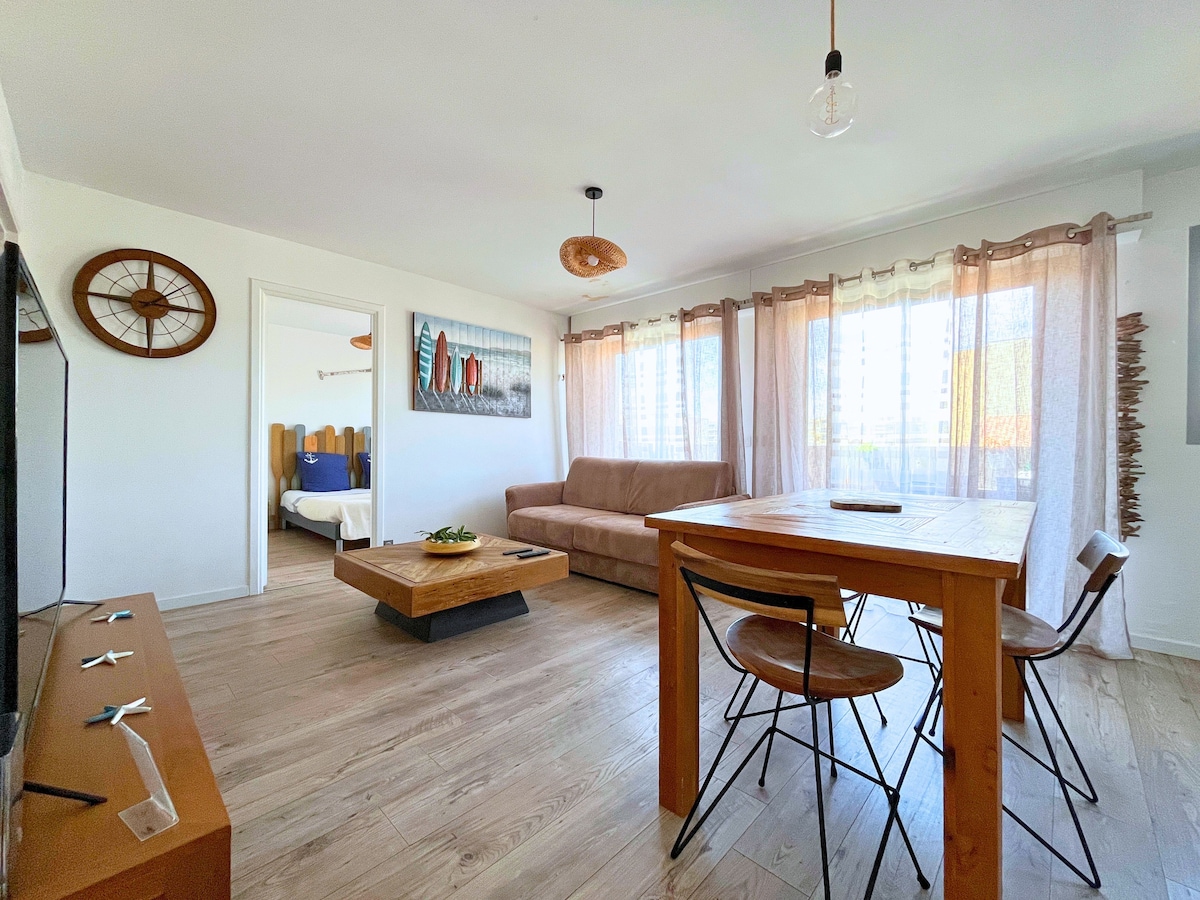 Dans un quartier calme et très recherché beau F2 de 55M2 dans résidence sécurisée tout confort avec belle terrasse de 15M2 donnant sur de la verdure sans vis à vis. Une chambre avec lit haut de gamme et séjour avec canapé en cuir. Téléviseur grand écran, wifi. Salle de bains avec baignoire et douche à l'italienne, wc séparés.