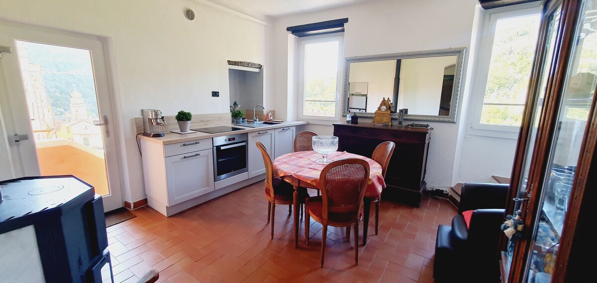 Long ago this was a stable where rabbits and goats were kept - now it's a spendid apartment with vaulted ceilings, vintage furniture, stunning views, a cute balcony, a large fully equipped kitchen and a lovely bathroom. It is a tranquil place where all you hear is the river down below, yet it's only a few steps to the village centre and the local bar. The apartment has been renovated and equipped to the highest standards - it's the perfect home away from home.
