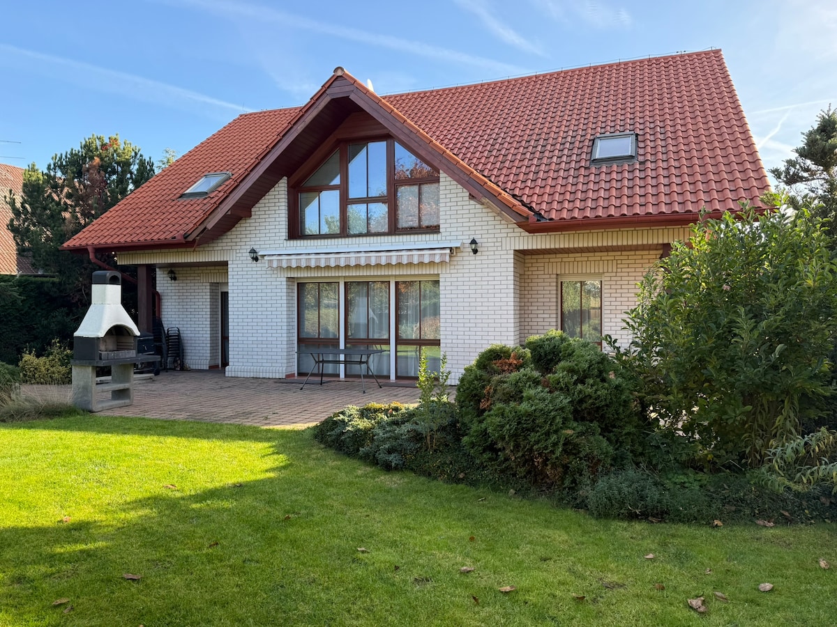 Húsið okkar er staðsett nálægt Vyšehrad og Congress Center, aðeins skrefum frá Wenceslas Square. Það státar af garði sem er fullkominn fyrir grill, rúmgóða verönd sem býður upp á stórkostlegt útsýni, upphitaða sundlaug, heitan pott og gufubað (frekari upplýsingar um vellíðunargjaldið hér að neðan). Umkringdur verslunum og veitingastöðum með greiðan aðgang að sporvögnum sem liggja að gamla bænum. Ef þú ert að leita að friðsælu og þægilegu afdrepi í nálægð við gamla bæinn er þetta tilvalinn áfangastaður fyrir þig.