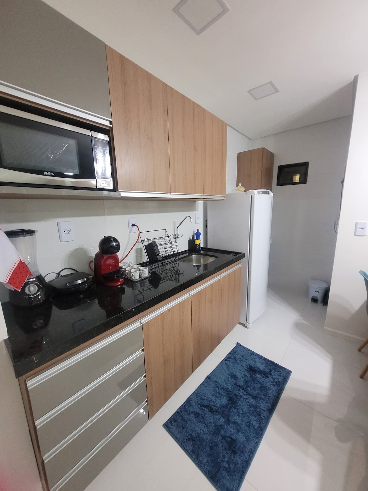 Nokkrum metrum frá Jatiúca-ströndinni og bestu veitingastöðum borgarinnar, njóttu allra þægindanna í hágæða eign. Þessi nýskreytta íbúð með svölum og fallegu útsýni yfir breiðstræti er með loftkælingu í stofunni og svefnherberginu, tvíbreiðu rúmi, svefnsófa og dýnu ásamt þráðlausu neti og sjónvarpi. Fullbúið og með eldavél og ísskáp, örbylgjuofni, blandara, kaffivél, samlokusnúru, straujárni og eldhúsmunum.