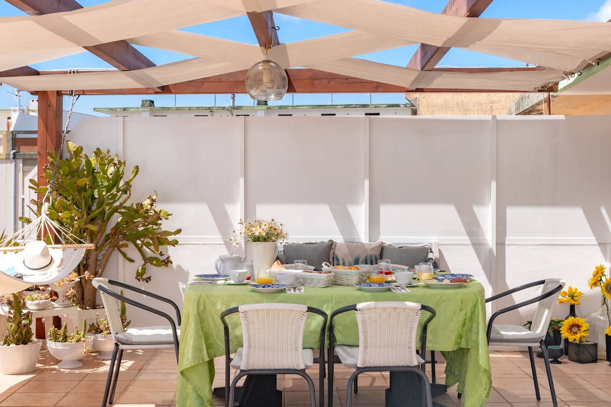 Íbúð 400 metra frá ströndinni, með 3 svefnherbergjum + 2 einbreiðum rúmum, 2 wc 's og verönd með útsýni yfir árósinn með 60m2, búin með nuddpotti með plássi fyrir 5 manns, grilli og sólstólum. Tilvalið fyrir 3 pör með möguleika + 2 manns. Ókeypis aðgangur að 8 fullorðnum hjólum, 2 börnum, 1 barnastól. Við erum einnig með barnarúm og færanlegan borðstofustól.