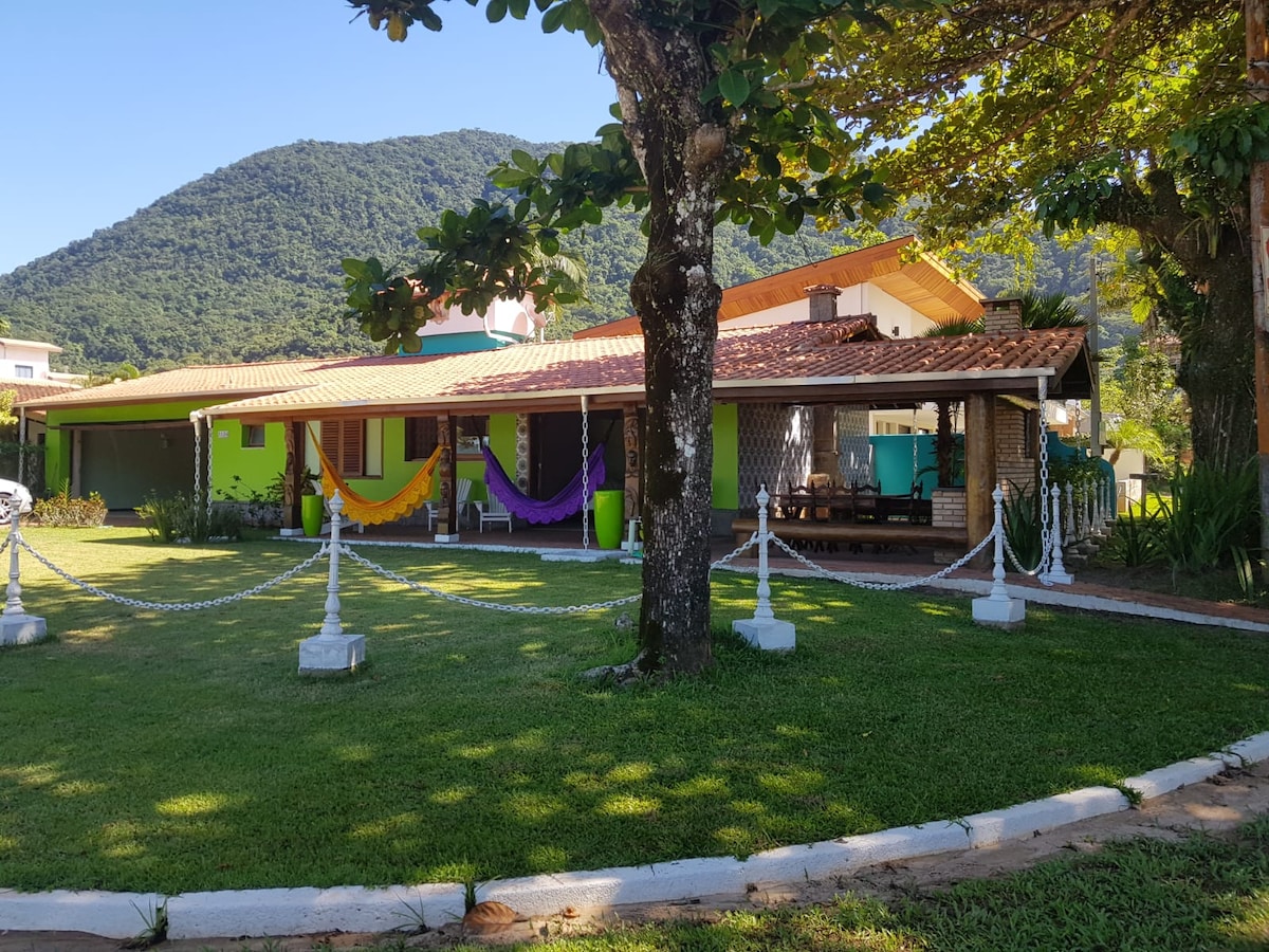 Mjög þægilegt og notalegt hús í Salga-íbúðinni við Lagoinha ströndina. Accomoda 16 (hámark 19) manns í 4 svítum. Með rúm- og baðfötum! Bærinn er aðeins í 150 metra fjarlægð frá ströndinni: aðeins í 2 mínútna göngufjarlægð frá fallegri götu án þess að fara yfir Rio-Santos-hraðbrautina. Loftkæling í öllum svítum, fullbúið eldhús, þráðlaust net, rúmgóð stofa og borðstofuborð fyrir 14 manns. Útisvæði með grasflöt, grilli og hengirúmum. Frábær staður fyrir nokkurra daga frí og hvíld með fjölskyldunni!