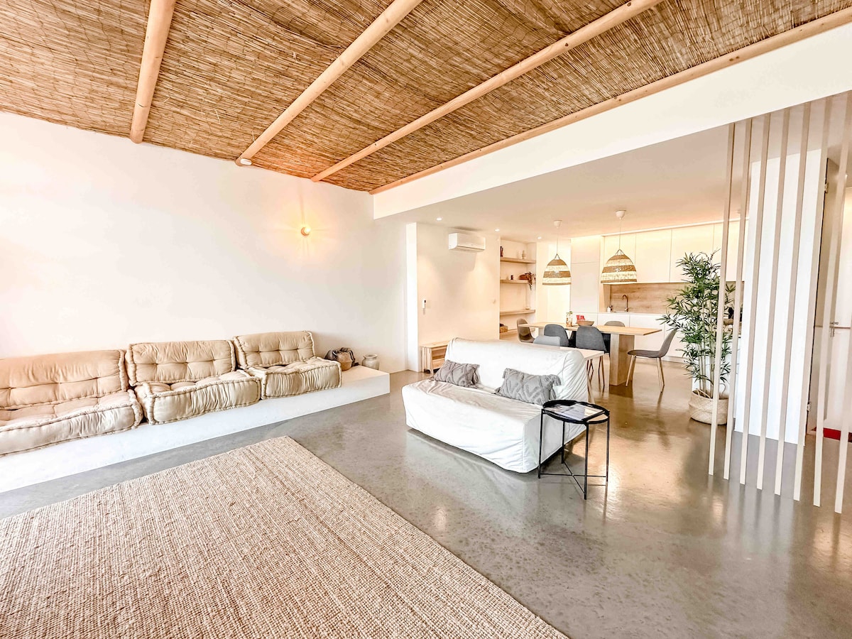 Bright & airy designed home, balcony, beach 1 min