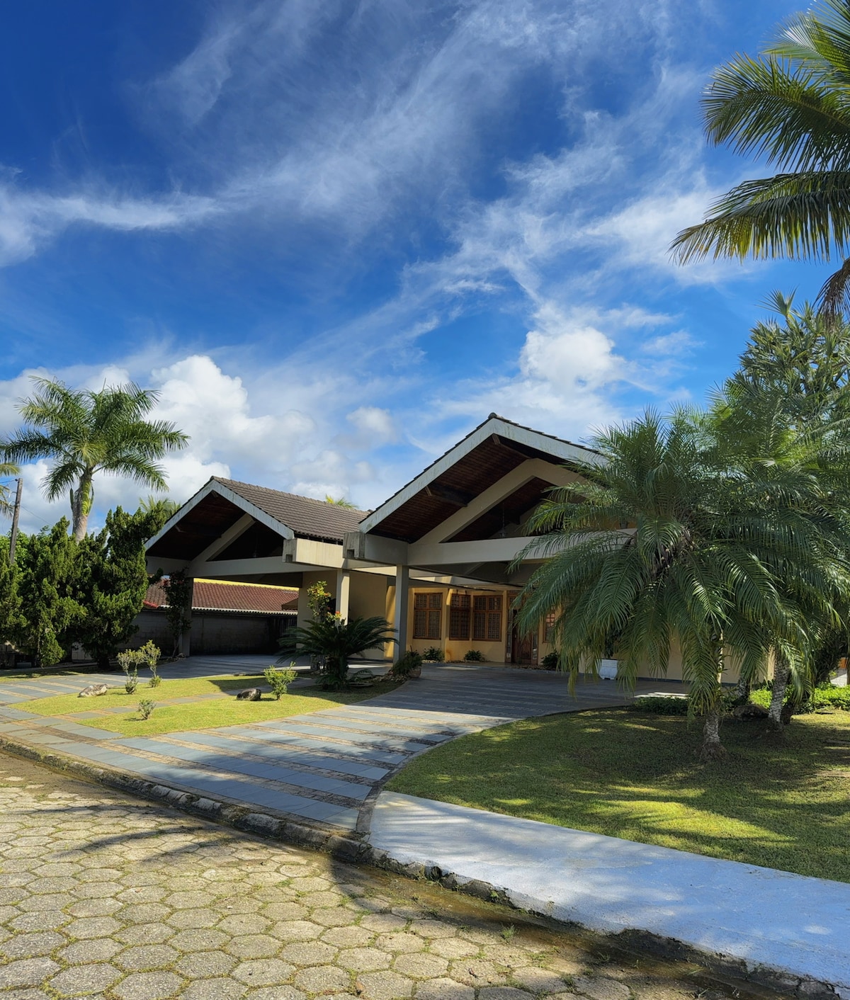 Fabulous and unique tropical house in Balinese style!! Recently renovated, with approximately 700m2. The house has 3 suites, 3 bathrooms, 1 Service toilet at ground floor, 1 Bathroom to serve the external area. Spacious living room, well-structured kitchen with dishwasher and laundry room. All bedrooms and living room have air conditioning. Beautiful garden with newly added pool with hydrospa corner, barbecue area and outdoor kitchen. Space to park on the street in front of the house.