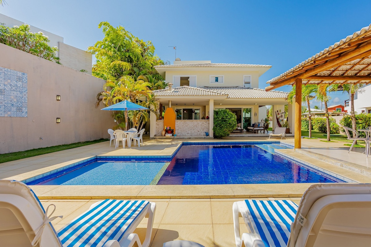Gaman að fá þig í hópinn! Njóttu þessarar rólegu og afslappandi gistingar í aðeins 30 km fjarlægð frá Salvador-flugvelli og 20 km frá Praia do Forte. Fallegt skáli við ströndina með öllum innviðum, í afgirtu íbúðasamfélagi í minna en 50 metra fjarlægð frá sjónum: - Rúmföt/baðherbergisáklæði; - Rafrænt hlið; - Loftræsting; - Nettenging; - Sjónvarp í stofunni með streymisþjónustu; - Svalir með hengirúmi og borðum; - Grillgrill og grillbúnaður; - Chuveirão (stór útisturtukofi) á útisvæðinu; - Bílskúr fyrir 1 bíl; Ronda/Vigilåncia;