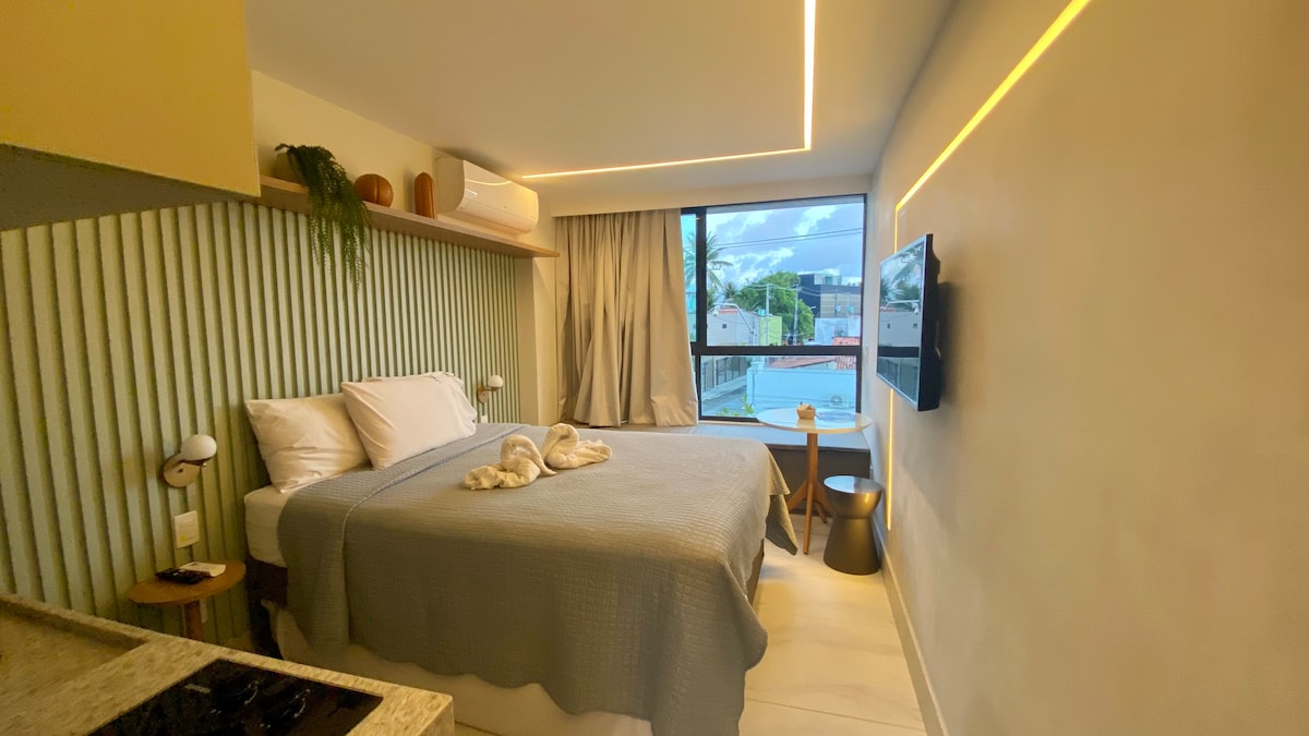 The Amazing studio that redefines the concept of premium hosting, offering a unique experience with the best view of the region, for the töfrandi natural pools and the iconic Porto de Galinhas plaque. Stúdíóið er fullkomið fyrir allt að þrjá gesti og er vandlega hannað fyrir hámarksþægindi. Með notalegu hjónarúmi og aukarúmi sameinar rýmið fágun og virkni. Fullbúið eldhúsið með helstu tækjunum (kaffivél, samlokugerð, blandara, eldavél, síu) veitir þér hagkvæmni til að láta þér líða eins og heima hjá þér án þess að gefa upp glæsileikann. Porto Mykonos er staðsett á besta sjávarsvæði Porto de Galinhas og er meira en gistiaðstaða. Þetta er ógleymanleg upplifun af lúxus, þægindum og einkarétti.