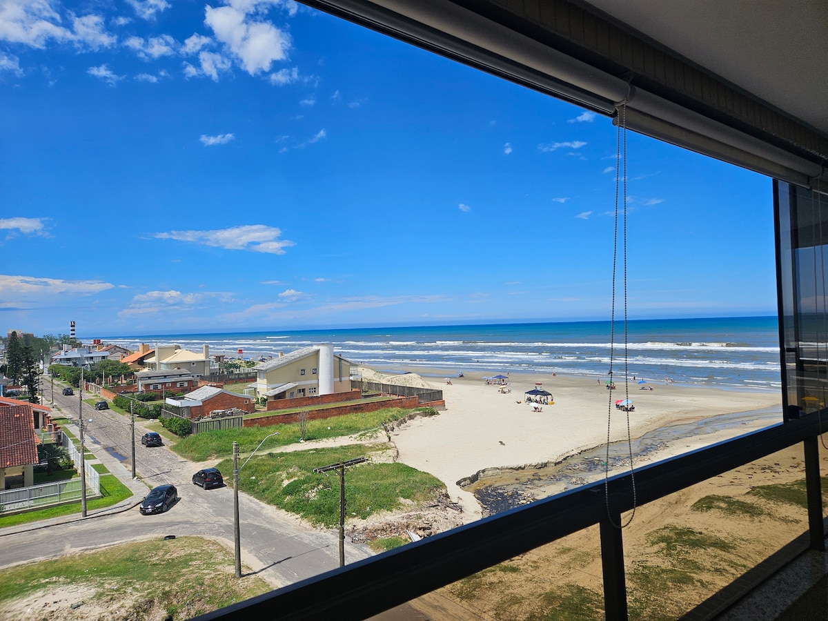 Njóttu strandlengjunnar Tramandaí í frábærri íbúð við ströndina, staðsett á 12. hæð, vel loftræst og með mögnuðu útsýni yfir ströndina. Eignin hefur allt sem þarf til að njóta friðsællar dvöl: Nettengingu, strandstóla, kapalsjónvarp, heimilistæki, rúmföt og handklæði. Staðsett steinsnar frá fjölbreyttum börum og veitingastöðum við ströndina og í um 700 metra fjarlægð frá miðbænum.