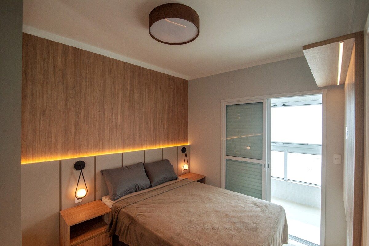 HREINLÆTI,ÞÆGINDI OG FRÁBÆR STAÐSETNING ER SKYNSAMLEGT FYRIR ÞIG? Ef svo er, velkomin/n á eitt besta AIRBNB í Praia Grande, hannað með mjög góðum smekk, komdu og láttu koma þér á óvart ! SJÁVARBAKKI! MEÐ LOFTKÆLINGU! Heill og velkominn af Caiçara, nýlega afhent bygging, heill í electros, snjallsjónvarp 55 í wi fi ,borðplötu fyrir heimaskrifstofu. Grill á svölunum með fallegu sjávarútsýni til að slaka á, yfirbyggður bílskúr,skjár í gluggunum allan sólarhringinn,skipulagður fyrir einstaka upplifun.