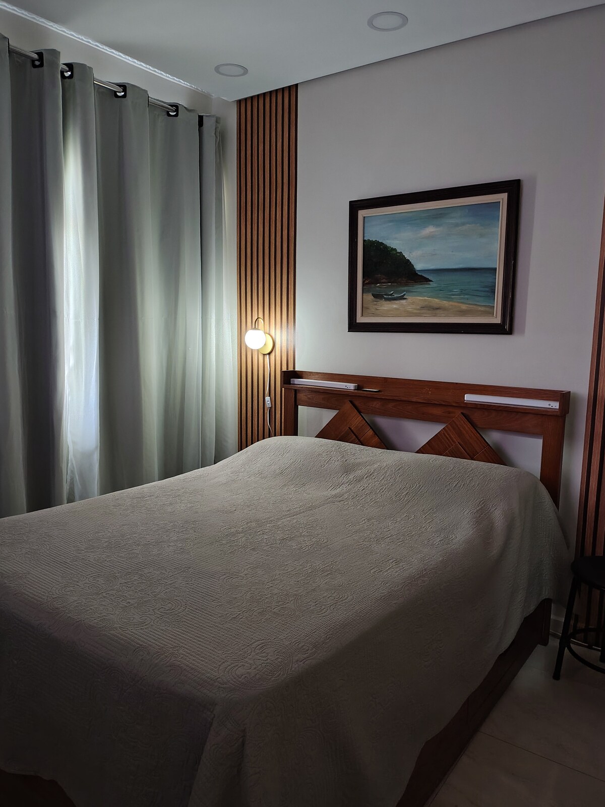 Þægilegt stúdíó með sjávarútsýni með skipulögðum húsgögnum, byggingu með lyftu, sólarhringsþjónustu og frábærri staðsetningu, 1 húsaröð frá ströndinni. Nálægt markaðnum, bakaríinu, veitingastöðunum og apótekunum. Góður aðgangur að VLT, Gonzaga og verslunarmiðstöðvum. Yfirbyggður og afmarkaður bílskúr fyrir 1 ökutæki. Athugasemdir: - Við bjóðum ekki upp á rúm- og baðföt. - Tímarnir okkar: Innritun frá kl. 17:00 og útritun til kl. 14:00.