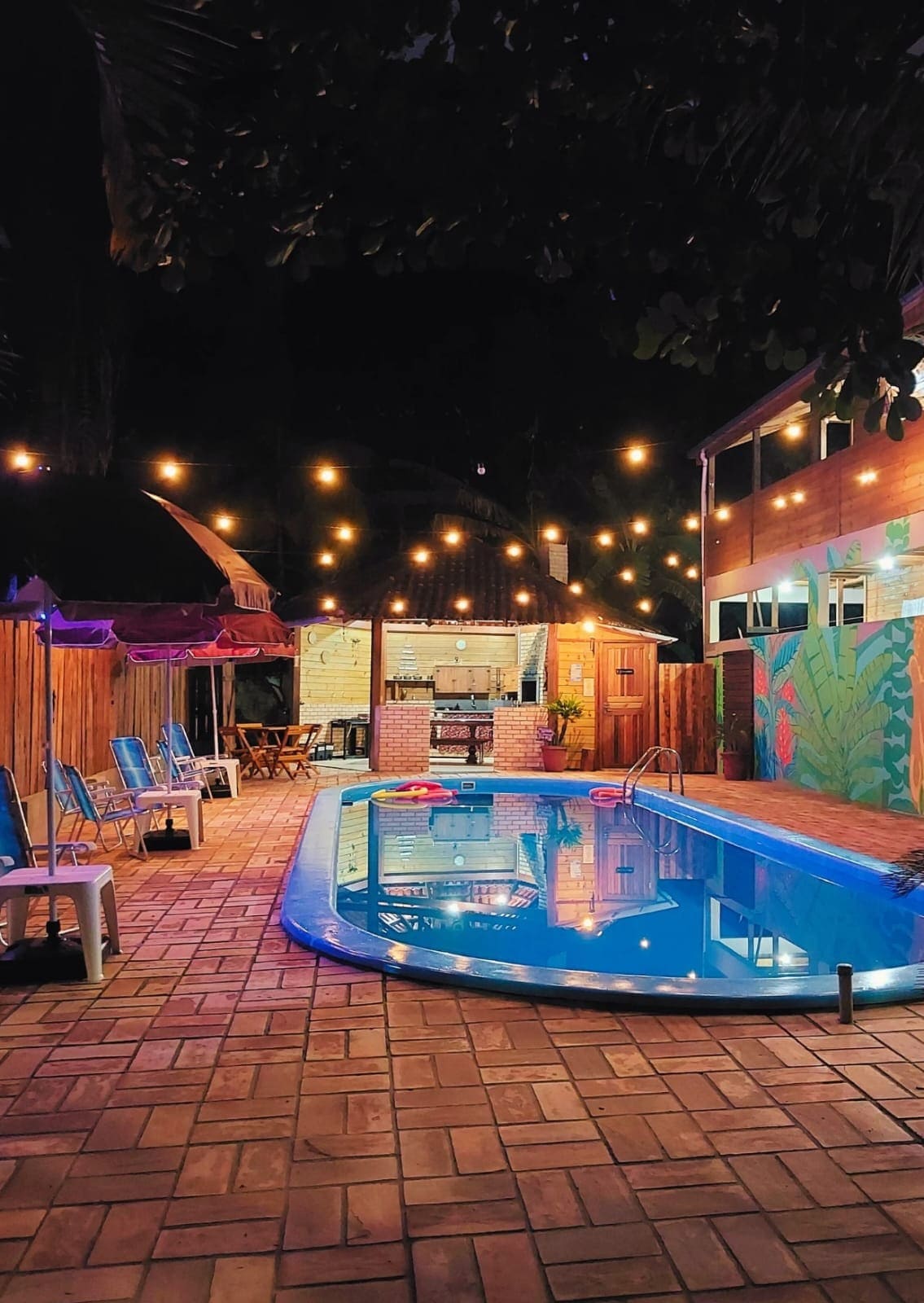 Suíte com cama de casal, ar condicionado, ventilador de teto, televisão smart, frigobar, banheiro e sacada com rede. Cozinha compartilhada com grande espaço para as refeições, fogueira, quiosque com churrasqueira ao lado da piscina e área verde. A apenas 400m da praia de Mariscal. Estamos a menos de 10 minutos (de carro) do Centro de Bombinhas.