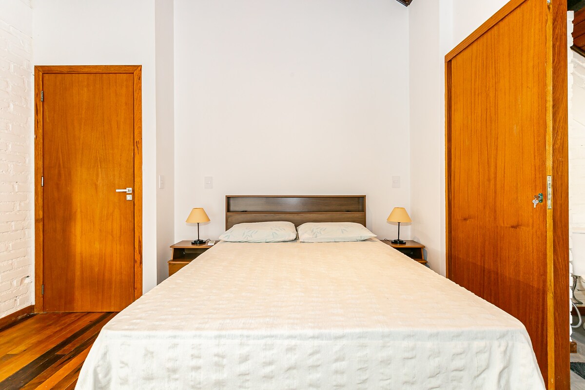 Super heillandi og rómantískt, tilvalið fyrir pör. Staðsett á hæð, með heildar náttúru í kring. Nálægt Joaquina ströndinni í 15 mínútna göngufjarlægð og 10 mínútur frá miðbæ Lagoa da Conceição. TILVALIÐ FYRIR ÆVINTÝRAMENN. Það er með hratt ÞRÁÐLAUST NET, fullbúið eldhús með nauðsynjum, rúmföt og handklæði. Hér er lítill markaður og veitingastaðir í 10 til 15 mínútna göngufjarlægð. TILVALIÐ FYRIR ADVENTUREIROS. Hér er gott þráðlaust net, sjónvarp, fullbúið eldhús með nauðsynjavörum, rúmfötum og handklæðum.