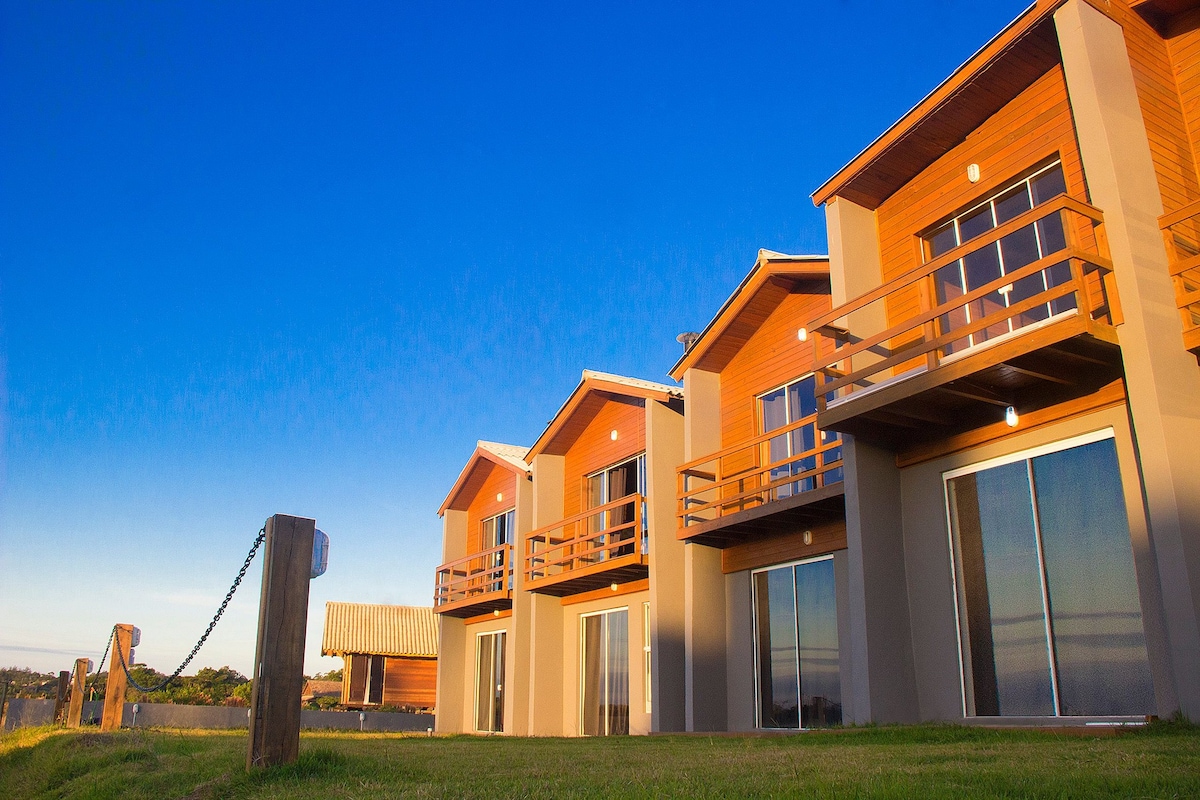 Bungalow Estrela, er staðsett á Ribanceira ströndinni, efst á hæðinni með forréttindaútsýni yfir sjóinn. Töfrandi! Rólegt og notalegt umhverfi mitt í náttúrunni með algjöru næði og öryggi. Tilvalið fyrir par. Hittu eignina okkar með verönd með HEILSULIND, öllum nauðsynlegum tækjum og áhöldum, sjónvarpi, sjónvarpi, loftkælingu, arni, gashituðu vatni og 500mb þráðlausu neti.