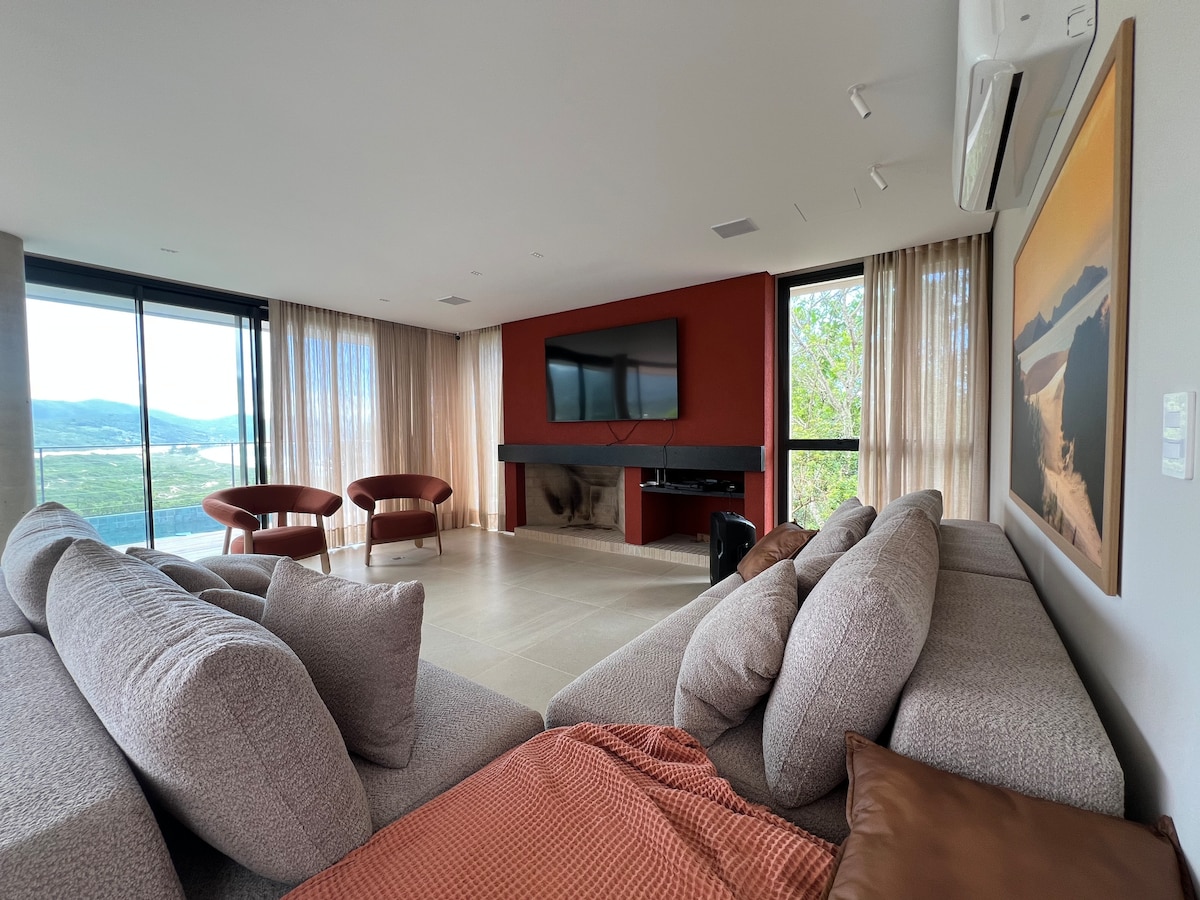 Hús með miklum stíl og útsýni yfir stórbrotið! Fyrir þá sem vilja bestu upplifanirnar, þægindin, fágunina, öryggi og ró! Þrjár svítur + Master Suite með king size rúmi, etanol arni, minibar og heitum potti. Upphituð heilsulind á veröndinni, pool-borð, loftkæling í öllum svefnherbergjum og stofum, þráðlaust net, innra og ytra grill, kjallari, brugghús, uppþvottavél og þvottahús. Við elskum gæludýr en leyfum ekki stóra hunda.