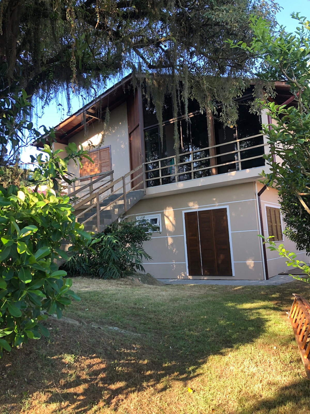 Ímyndaðu þér að gista í mjölverksmiðju á sek. XIX, óaðfinnanlega varðveitt sem er hluti af sögu og menningu staðarins. Fullkomin uppbygging til að taka á móti allt að fjórum einstaklingum með þægindum og hlýju. Stórkostlegt útsýni sem snýr að vötnum Lagoa da Conceição, verönd og fallegri strönd fyrir framan húsið. Notaleg eign með ljósleiðaraneti sem er umkringd náttúru Atlantshafsskógarins og fossunum þar. Einstök upplifun og einn af fallegustu stöðum eyjunnar. Aðgangur með bát eða slóð.