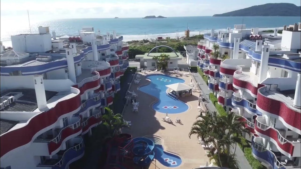 Slakaðu á og njóttu 5 stjörnu dvalarstaðar í Jurerê Internacional, vaknaðu, farðu út á svalir, horfðu á ströndina og sundlaugina og veldu hvert þú kýst að fara til að njóta dagsins. Og á kvöldin eru barirnir og veitingastaðirnir í nokkurra metra fjarlægð. Þessi dvalarstaður, við hliðina á sjónum, er með sólarhringsmóttöku, hótelþjónustu, rúm- og baðföt, þægindi (sjampó o.s.frv.), sundlaugar utandyra og innandyra (upphitaðar), herbergi ef leikir, afþreying fyrir börn, leikvöllur, líkamsrækt og strönd eru í nokkurra metra fjarlægð.